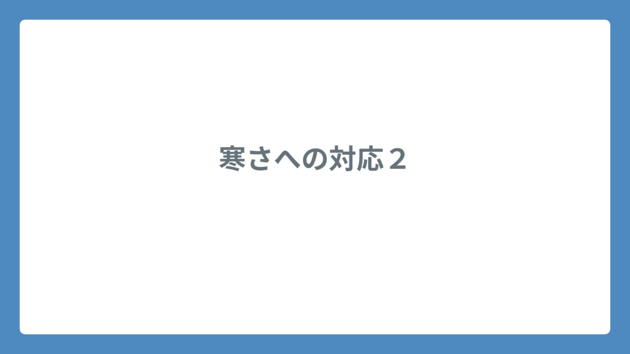 今回は寒さへの対応1に引き続きお話をしてまいります。